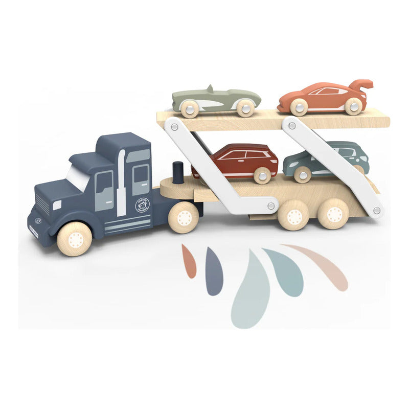 Speedy Monkey - Camión Transportador + 4 Carros De Madera