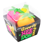 Schylling's Groovy Fruit NeeDoh está lleno de diversión afrutada. Esta pelota antiestrés y juguete inquieto único viene con un Boss Banana, Outta Sight Strawberry y Far Out Orange que se pueden exprimir, aplastar, tirar y reventar.