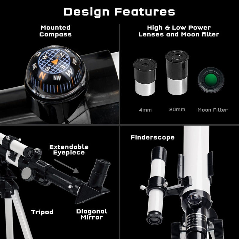 Telescopio perfecto para principiantes: Aumento de 20x y 100x