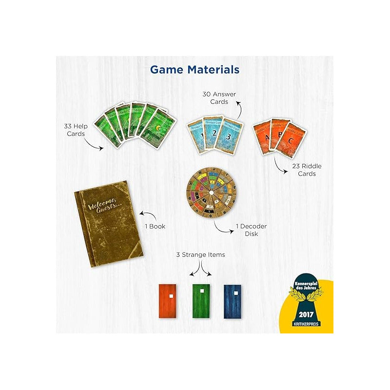 El exitoso concepto de Escape-Room para uso doméstico. Juego de fiesta para hasta 6 jugadores, 45-90 minutos. Debes resolver una serie de acertijos y acertijos para escapar de una habitación. Cada solución correcta te lleva a otro acertijo.