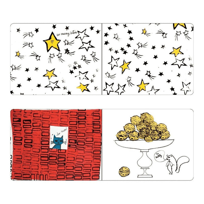Mejor conocido por sus imágenes de latas de sopa y celebridades, Andy Warhol, uno de los artistas más destacados del siglo XX, también creó muchas piezas extravagantes y maravillosas dibujadas a mano. En 30 páginas bellamente ilustradas, el libro de cartón So Many Stars muestra la colección completa de uno de sus proyectos más divertidos, una exploración del concepto de o, "que incluye Eres tan grande, eres tan pequeño, tan dulce y te amo So. Lleno de frases dulces y una función de espejo que deleitará a los lectores jóvenes, So Many Stars es una excelente introducción a un artista moderno icónico.