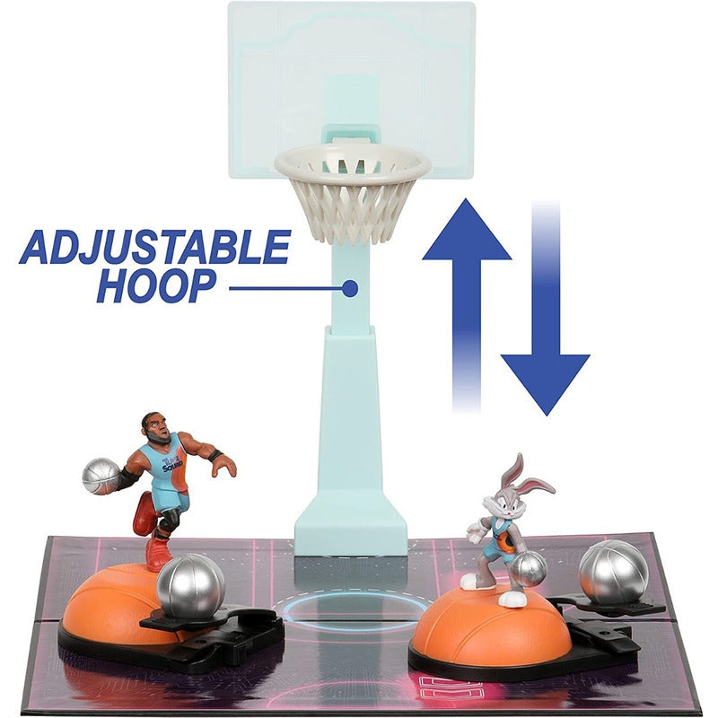 Juego de Mesa Space Jam A New Legacy Bugs Bunny + Lebron Moose Toys 100% Original Trae toda la acción en la cancha de Space Jam: un nuevo legado a tu hogar con el juego de juego Dispara pelotas de baloncesto y puntuación con los lanzadores Dispara desde cualquier lugar de la cancha moviendo el lanzador. Incluye figuras de LeBron James y Bugs Bunny Incluye cancha de baloncesto Space Jam con aro de altura ajustable. El juego funciona con todas las minifiguras coleccionables de Space Jam: A New Legacy (se venden por separado) para que puedas disparar los aros con tu personaje favorito