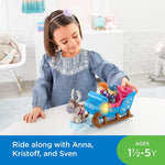 Coloca las figuras de Anna & Kristoff en el trineo; la figura de Sven encaja delante para "tirar" el trineo