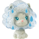 Una diadema en forma de sol y zapatos translúcidos completan su dulce look, y un gatito amigo con un disfraz a juego se suma a la diversión