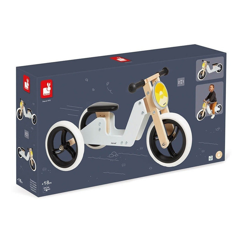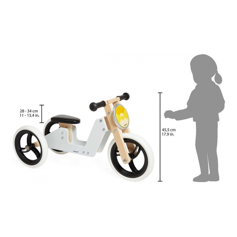 Janod - Triciclo/Bicicleta de Equilibrio de Madera 2-En-1