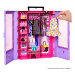 ¡Barbie® Ultimate Closet™ tiene estilo por dentro y por fuera! Está diseñado para jugar y poder llevar a Barbie® y sus conjuntos favoritos dondequiera que vayan! Seis (6) ganchos de ropa ayudan a mantener la moda organizada y ordenada, mientras que una gran cantidad de espacio en los estantes es perfecto para guardar lindos accesorios.