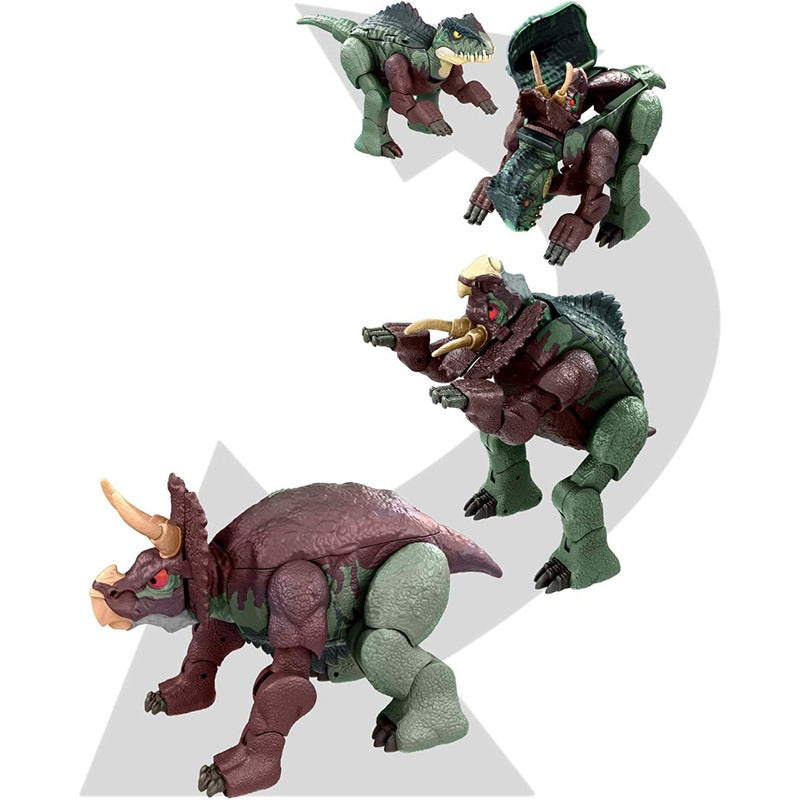 Transforma la diversión. Llevando la conversión de juguetes a un nuevo nivel, cada figura se graba para formar las características distintivas de estos grandes dinosaurios, desde cuellos y colas extendidos hasta cuernos, garras y extremidades, dependiendo de la especie.