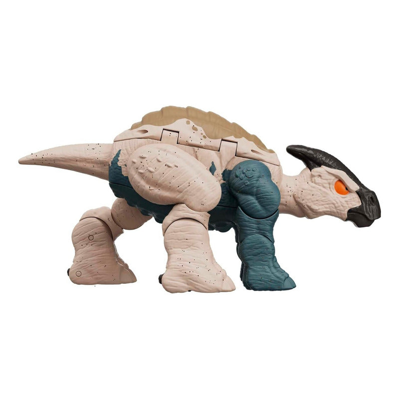 Hay 4 figuras diferentes de dinosaurio a dinosaurio disponibles. Tyrannosaurus rex se transforma con Ankylosaurus en 2 decoraciones diferentes. Carnotaurus se transforma con Stegosaurus y Baryonyx con Parasoralophus. Se han diseñado características demostrables de cada especie. Un gran juguete transformador para niños de 6 años en adelante.