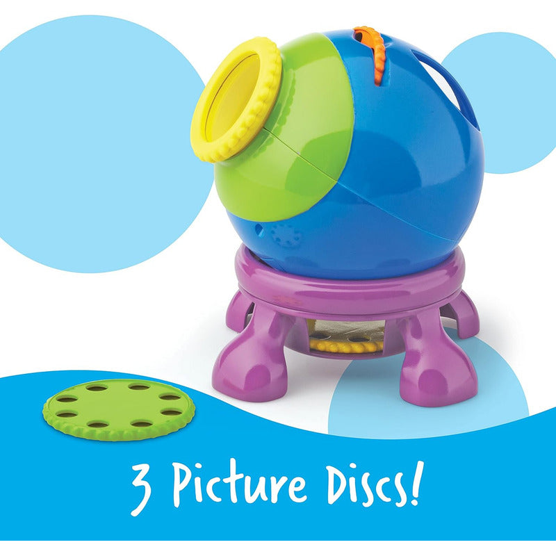 INCLUYE: El juego de 5 piezas incluye proyector con soporte de visualización, 3 discos de imágenes con 8 imágenes en cada uno (24 imágenes en total) y guía de actividades.