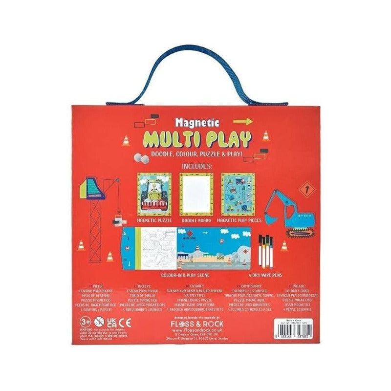 ¡Garabatea, colorea, rompecabezas y juega! The Construcción Magnetic Multi Play es el juego multidimensional definitivo. Con 4 actividades diferentes para mantener entretenidos a los más pequeños durante horas. Abre el popper para revelar un rompecabezas magnético de 20 piezas, bolígrafos de toallita seca de 4 colores con gomas de borrar, saca y juega piezas magnéticas, un garabato y una sección de color. No hay peligro de perder ninguna pieza, ya que todas son magnéticas, lo que las hace perfectas para viajar y llevarlas fuera de casa. Diviértete mucho con excavadoras, camiones, constructores y conos de tráfico, ideal para el entusiasta de la construcción en tu vida Juego portátil con asa de transporte. 4 juegos en 1. Bolígrafos de toallita seca de 4 colores con gomas de borrar. Se pliega hasta quedar plano. Perfecto para viajar y para llevar. Ecológico.