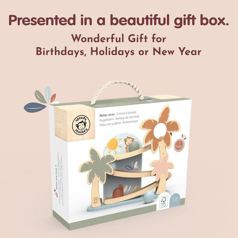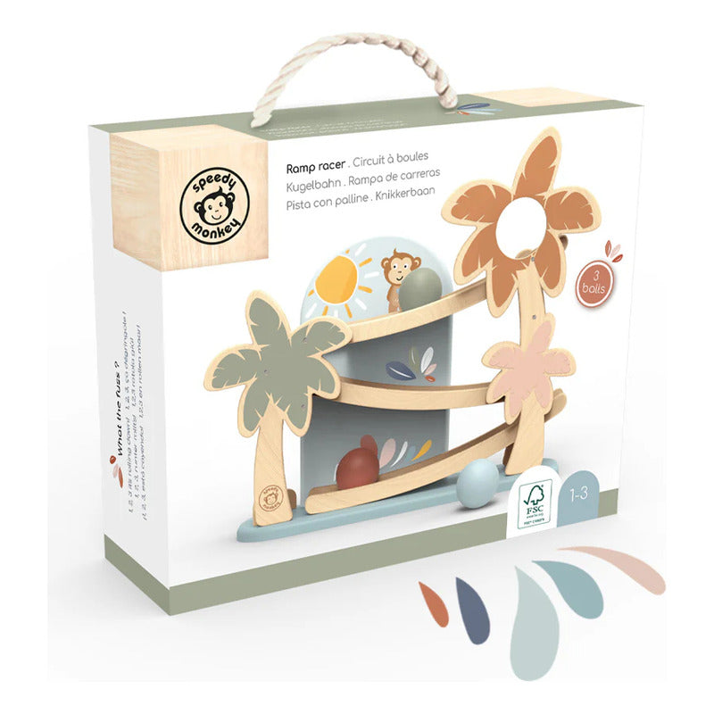 SPEEDY MONKEY. Corredor De Rampa De Madera + 3 Bolas