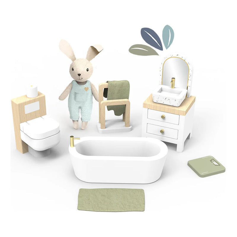 SPEEDY MONKEY. Juego De Baño Para Casa De Muñeca + 1 Conejito