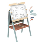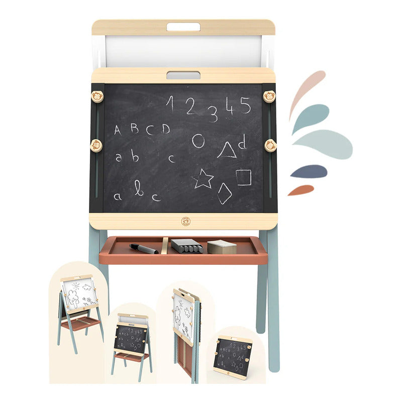 Este caballete de madera ajustable ofrece dos lados: una pizarra y una pizarra blanca. Tu pequeño puede dibujar libremente con tizas en la pizarra y con rotuladores especiales en el lado blanco.