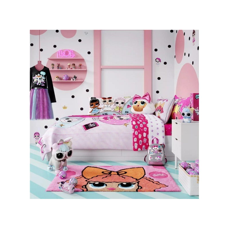 Esta gran almohada para el cuerpo en 3D combina perfectamente con la ropa de cama Llit Surprise 'Glitterful' (se vende por separado). Con 46 x 92 cm es la almohada de cuerpo de tamaño perfecto para que un niño se acurruque. Esta almohada para el cuerpo muestra los personajes LOL Surprise favoritos de su hijo como Royal High-Ney, Leading Baby y Miss Baby.