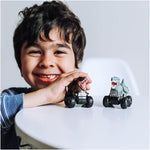 Con una banda de rodadura gruesa, ruedas todo terreno y tapacubos icónicos de Jurassic World, ¡perfectos para carreras y batallas!