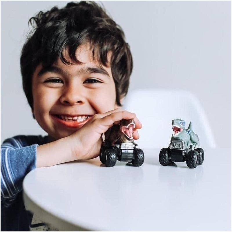 Los Jurassic World Dominion Edition Zoom Riders son coches con motor pull-back especialmente detallados.