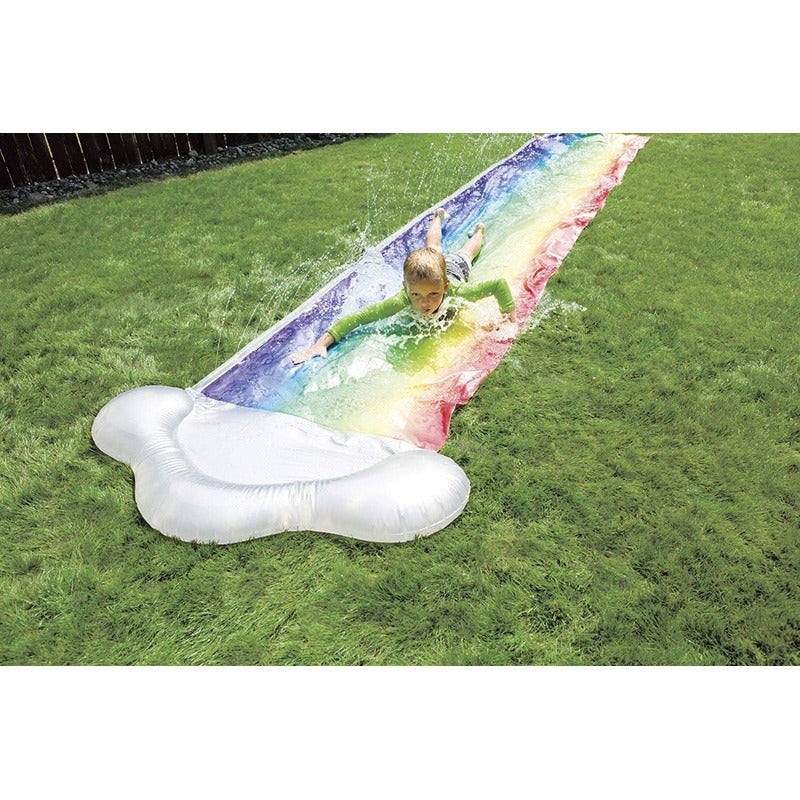 Monta el arco iris mientras chapoteas y te deslizas a través de sus 16' de longitud