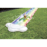 Incluye tobogán acuático arcoíris inflable de 40cm de largo, 2 estacas rojas, instrucciones