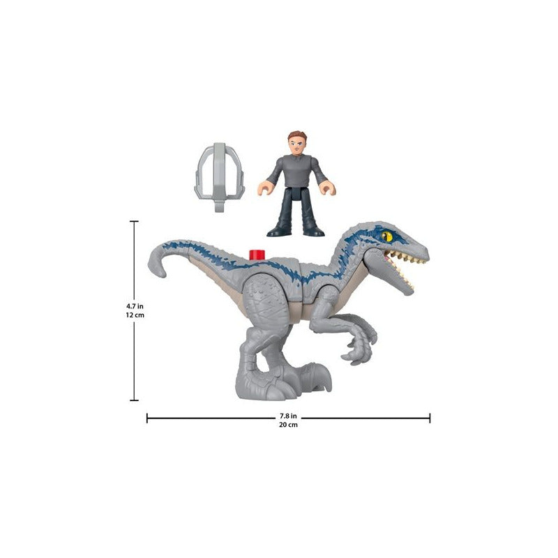 Pero cuidado, ¡este feroz dinosaurio puede liberarse por sí solo con una increíble acción de golpes activada por niños! Este set de figuras de acción XL de Jurassic World Imaginext Breakout 'Blue' incluye 1x figura azul, 1x figura de Owen Grady y un arnés extraíble.