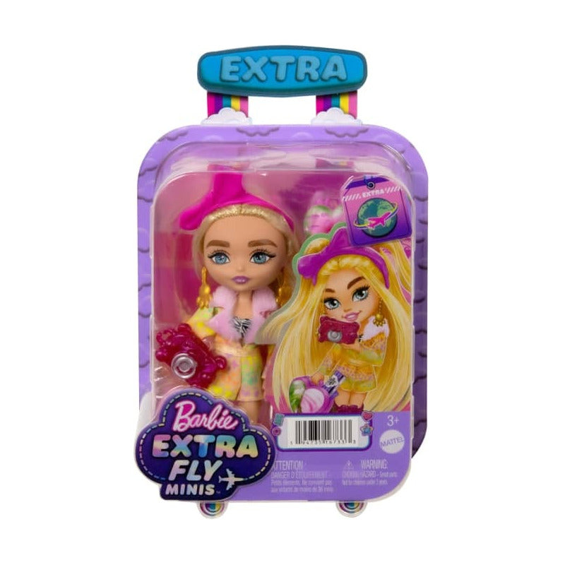 ¡Las muñecas Barbie Extra Fly viajan con estilo, luciendo modas audaces para diferentes destinos de viaje! Cada muñeca Barbie® Extra Minis™ de 14cm tiene su propio aspecto único con un atuendo perfecto para una escapada a la nieve, el desierto, el safari o la playa.