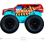 Cada camión tiene una escala 1:43 y presenta los impresionantes gráficos y ruedas gigantes de la marca Hot Wheels Monster Trucks®. Presiona un botón para escuchar el motor y los sonidos aplastantes, así como la canción principal de cada vehículo héroe: es como estar en el show en vivo.