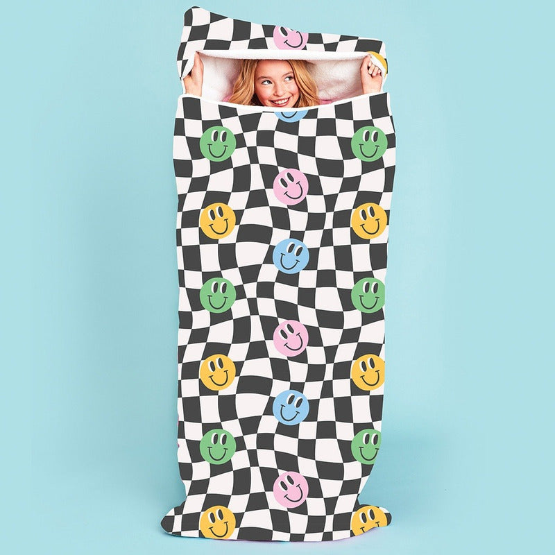 Este saco de dormir de sherpa fleece súper grueso y acogedor es tan brillante y llamativo que podrías pensar que su alegre estampado te mantendrá despierto. Pero no te preocupes, podrás acurrucarte como nunca con este extra suave sleeping bag!