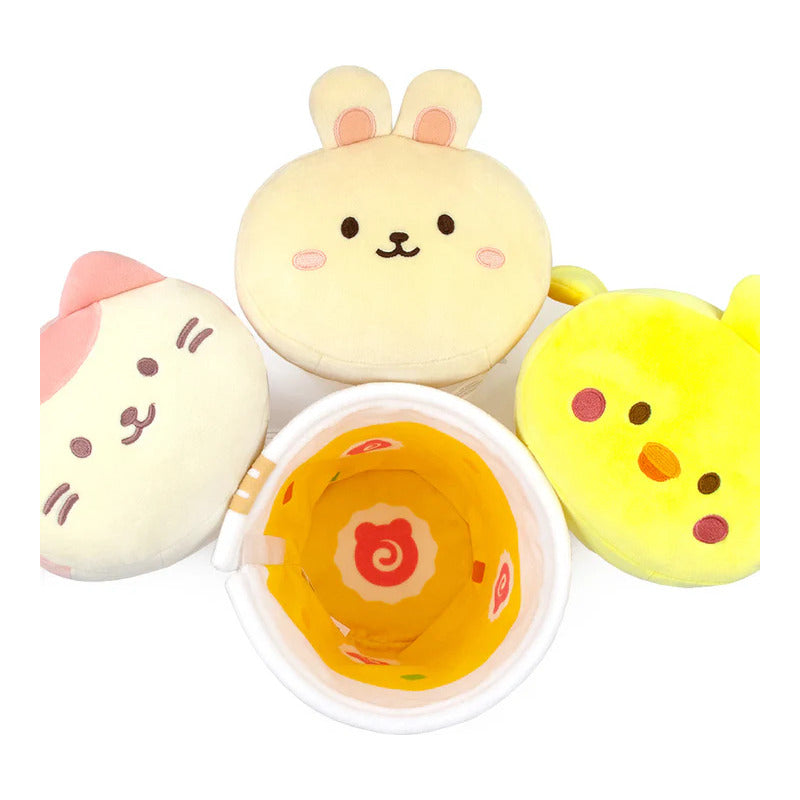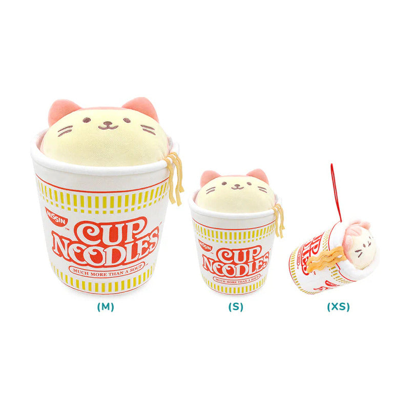 Peluche de gato kawaii en forma de taza de fideos instantáneos.