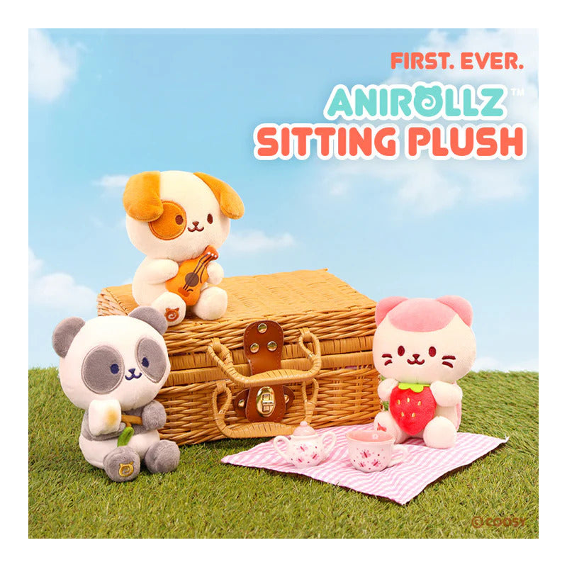 Puppiroll tocando la guitarra, Pandaroll comiendo un malvavisco y Kittiroll acariciando su fresa favorita. ¡Qué picnic tan perfecto para los Anirollz!