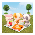 ¡Qué picnic tan perfecto para los Anirollz! Perrito kawaii sosteniendo un peluche de fresa