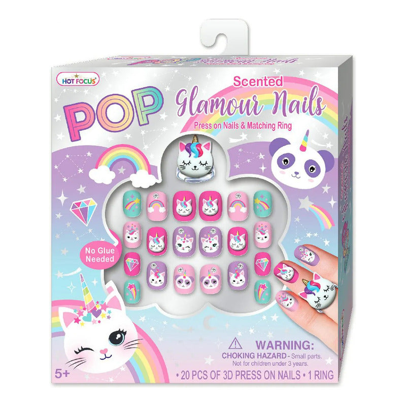 Hot Focus - Pop Glamour Nails: Uñas Postizas Caticorn (Perfumadas)