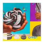Este juego incluye 142 g de masa en color negro y blanco, además de 2 g de chispas de polímero multicolor, brindando una experiencia táctil y visual que estimula la imaginación.