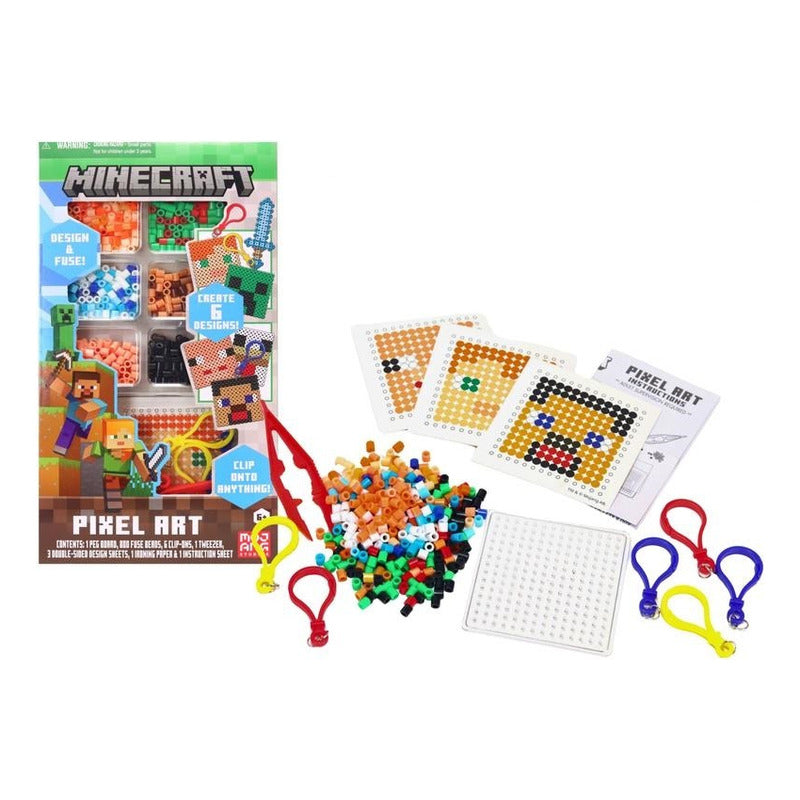 Repleto de cuentas fusibles, plantillas y clips de colores, este kit ofrece infinitas posibilidades creativas inspiradas en el mundo de Minecraft.