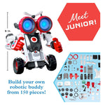 Construir y programa Junior, tu nuevo mejor amigo robótico, con este emocionante kit que enseña principios básicos de física, ingeniería e informática.