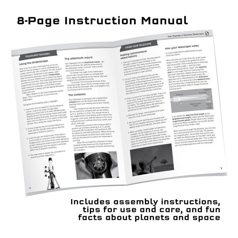 ¡Pon tu mirada en la Luna y más allá! Con este excelente telescopio de nivel de entrada, Thames & Kosmos continúa una larga tradición de inspirar a las personas a alcanzar las estrellas.