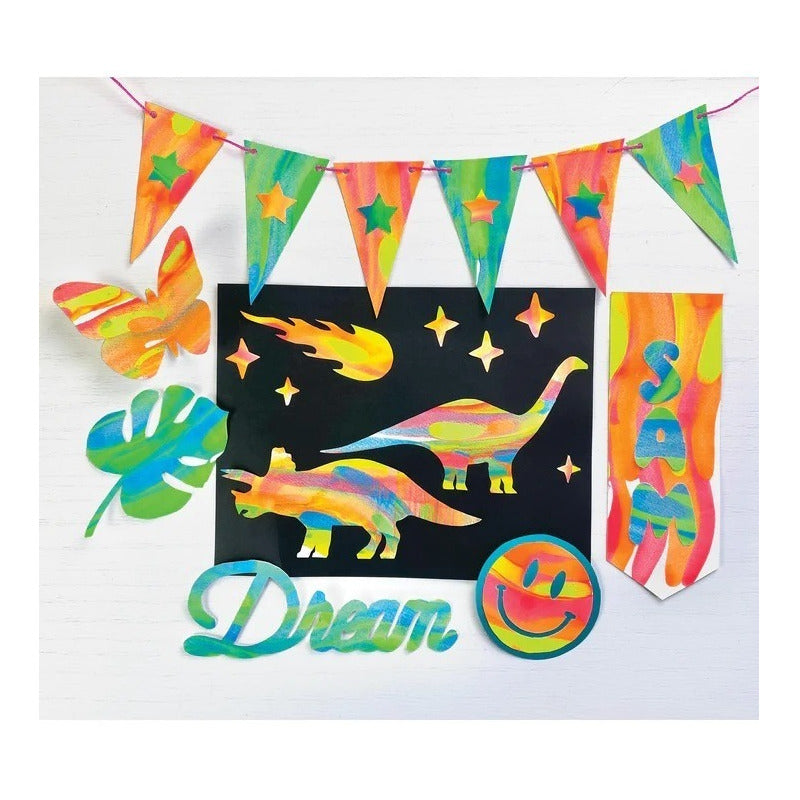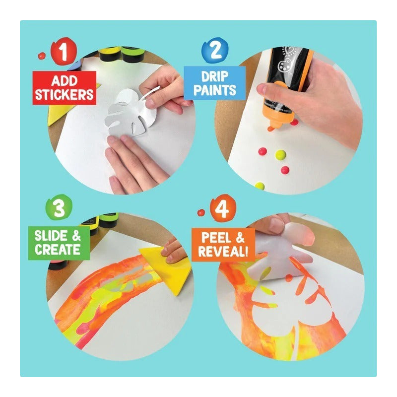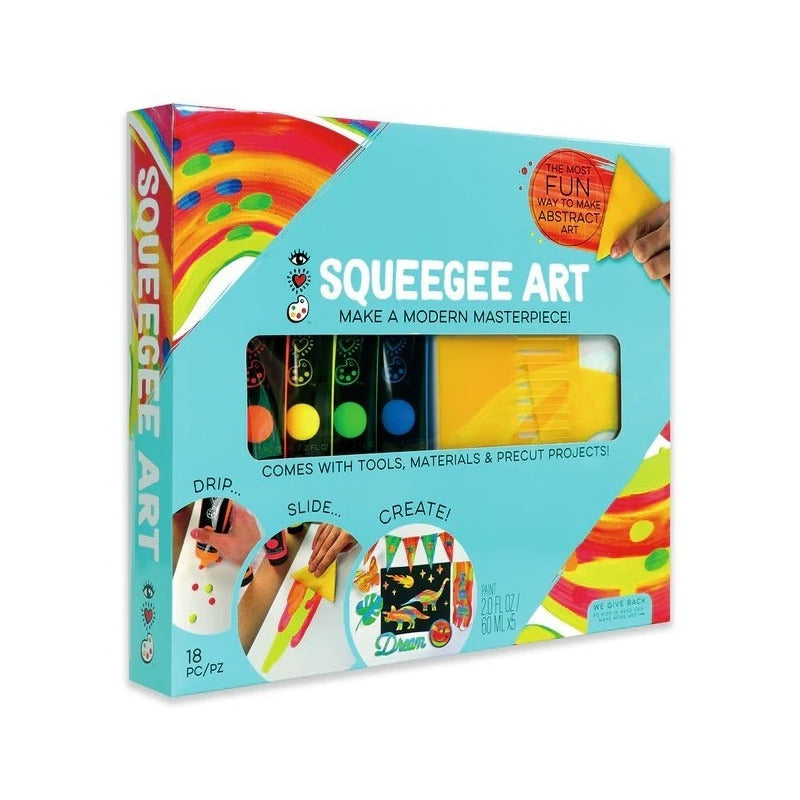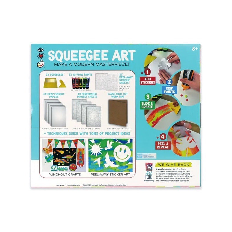 I HEART ART. Squeegee Art BRIGHT STRIPES. 100%ORIGINAL ¡Gotea, desliza y crea una obra maestra moderna! Es la forma más divertida de hacer arte abstracto. ¡La tendencia de las redes sociales fácil para los niños! Viene con 2 escobillas de goma, 5 pinturas de neón (60ml cada una), 6 papeles gruesos, 4 hojas perforadas, 2 hojas de calcomanías y una gran superficie de trabajo plegable. No hay una forma incorrecta de squeegee. ¡Descubre una nueva técnica y abre un mundo de posibilidades artísticas! ***iHeartArt dona el 5 % de sus ganancias a su socio benéfico, Art Feeds, que brinda lecciones de arte, capacitación y materiales de arte a niños necesitados. ------------------------------------------------------------ ------------------------------------------------------------