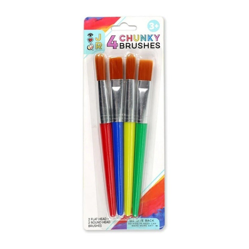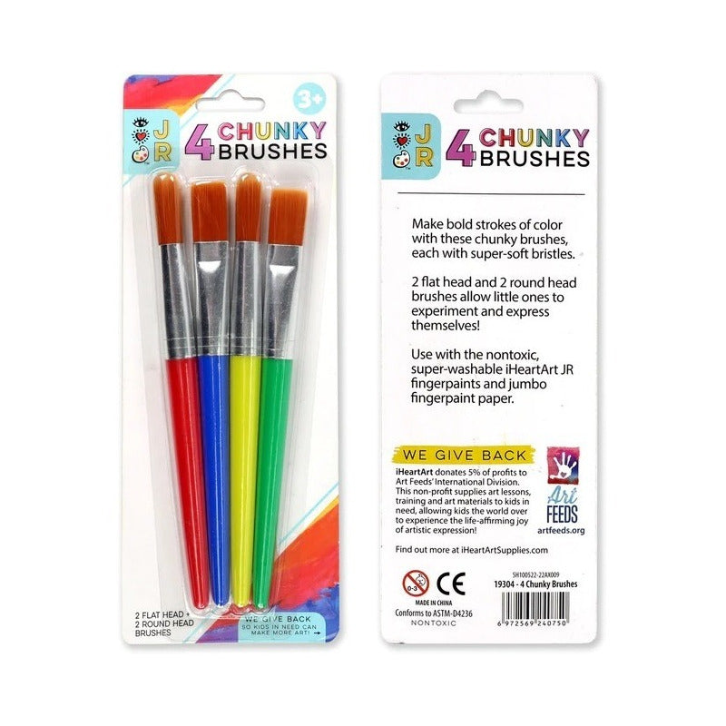 I HEART ART. Junior - Pinceles de Dibujo para Niños (4pk) BRIGHT STRIPES. 100%ORIGINAL Empieza a pintar con estos 4 pinceles gruesos y coloridos de cerdas supersuaves para pintores jóvenes! Los 2 cabezales de cerdas planas y 2 redondas les permiten experimentar con diferentes tipos de líneas y trazos. Los mangos regordetes de colores brillantes son fáciles de sostener. Las cerdas son excelentes para pintar con los dedos y pinturas al temple. Simplemente lave sus pinturas con agua y jabón para preservar sus pinceles. La colección iHeartArt JR es de materiales de arte de alta calidad hechos especialmente para niños pequeños de 3 a 5 años. ***iHeartArt dona el 5 % de sus ganancias a su socio benéfico, Art Feeds, que brinda lecciones de arte, capacitación y materiales de arte a niños necesitados. ------------------------------------------------------------ ------------------------------------------------------------