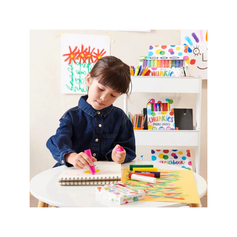 ¡Un set de inicio de barras de pintura Chunkies en un paquete de 6 apto para viajes! Estas barras de pintura son fáciles de sostener y vienen en 6 colores clásicos y de secado rápido. Puede girar barriles para una diversión duradera y sin ensuciar que encantará tanto a niños como a adultos.