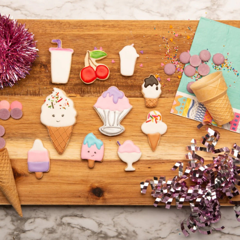 ¡Es difícil superar este gran juego de cortadores de galletas, que seguramente te mantendrá fresco con todas tus formas de helado favoritas para hornear galletas!
