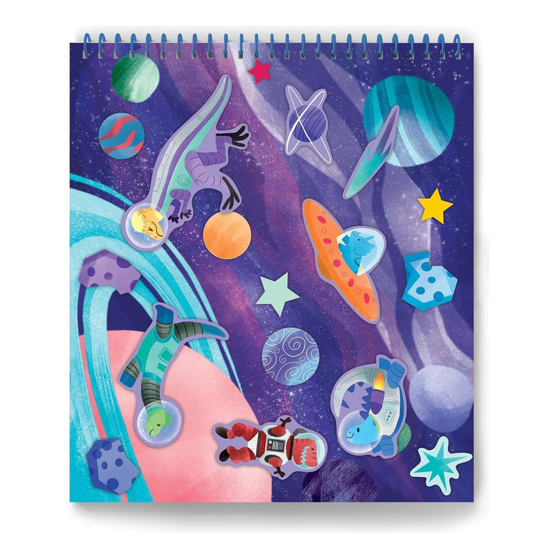 Dinosaurios en el Espacio: ¡Cuenta la historia de dinosaurios que viajaron al espacio para escapar de la extinción y se encontraron con extraterrestres con este adorable kit de pegatinas! ¡Personaliza cada escena eligiendo las pegatinas que usarás!