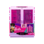 ¡Barbie® Ultimate Closet™ tiene estilo por dentro y por fuera! Está diseñado para jugar y poder llevar a Barbie® y sus conjuntos favoritos dondequiera que vayan! Seis (6) ganchos de ropa ayudan a mantener la moda organizada y ordenada, mientras que una gran cantidad de espacio en los estantes es perfecto para guardar lindos accesorios.