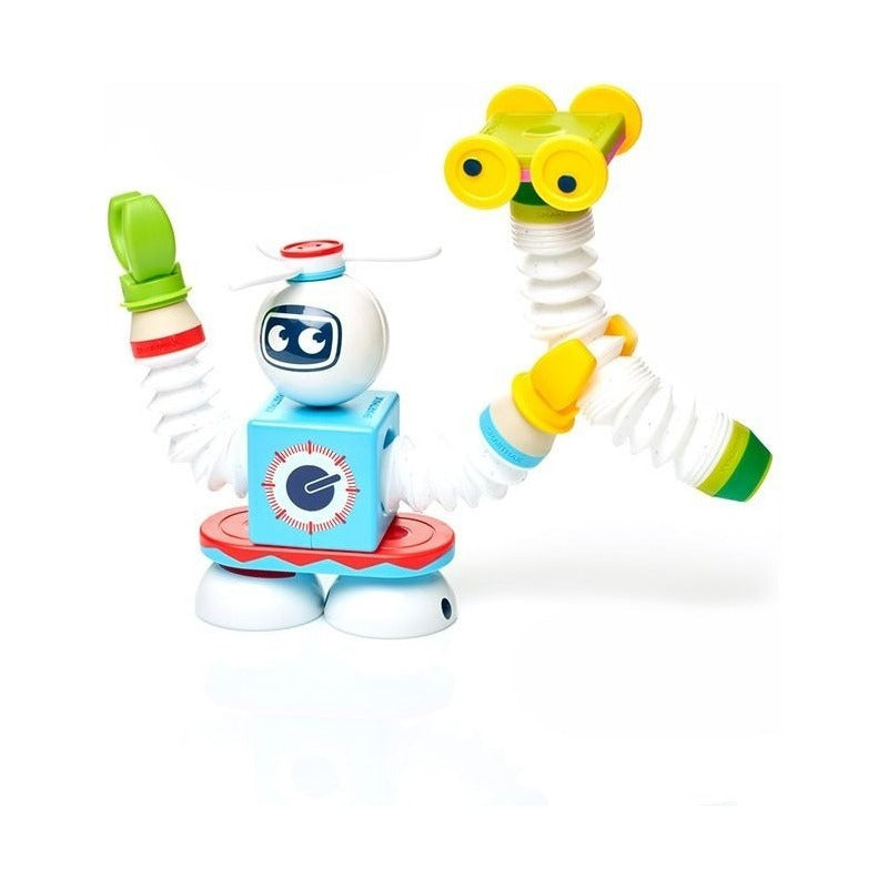EL SET INCLUYE: 12 piezas coloridas, incluyendo barras flexibles para construir todo tipo de robots.