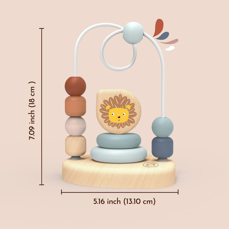 ¡Juega con tu amigo león, rey del laberinto de cuentas! Las manos pequeñas pueden mover las cuentas de colores suaves por encima, por debajo y a través del marco de cuentas de alambre a medida que avanzan.