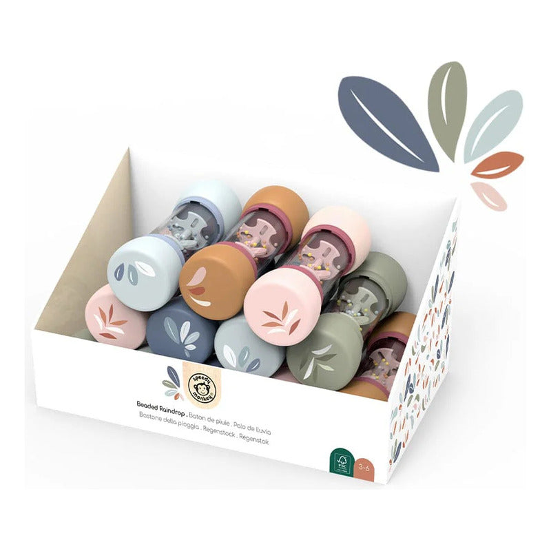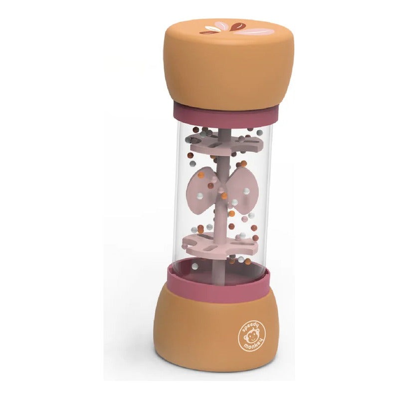 Primer juguete musical perfecto para niños pequeños. Dale la vuelta a este rainmaker y estimula los sentidos con cuentas que gotean y sonidos relajantes de gotas de lluvia.