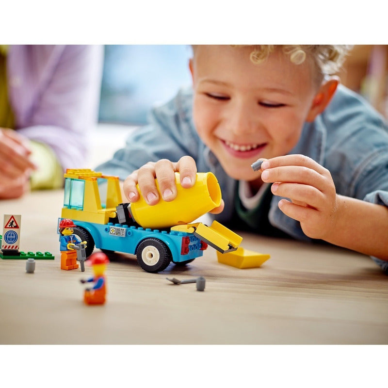 ¡Pon a trabajar la imaginación de tu peque con el Camión Hormigonera LEGO® City (60325)! Este vehículo de obra de juguete, equipado con cabina del conductor que se abre y cuba mezcladora giratoria, viene con un martillo neumático, una carretilla y una señal de juguete.