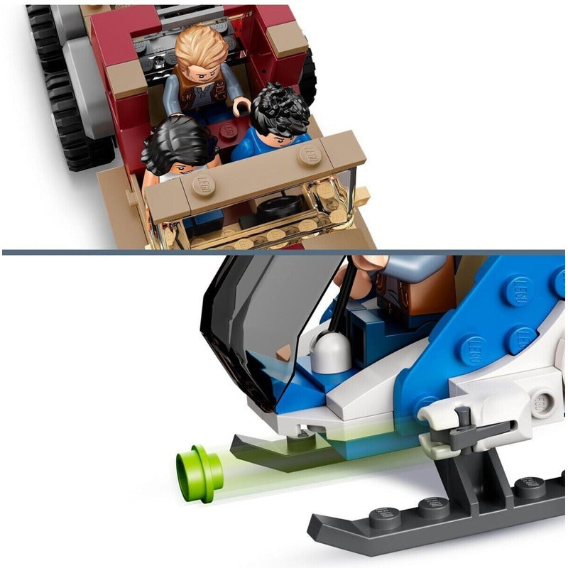 LEGO 100%ORIGINAL Los peques podrán divertirse con creatividad durante horas con el juego de juguetes LEGO® Jurassic World Persecución del Dinosaurio Carnotaurus (76941), que contiene una figura articulada de un Carnotaurus, así como un helicóptero y una furgoneta construibles. El helicóptero de juguete cuenta con cabina para una minifigura, hélice giratoria y cañón para aportar acción al juego. Contiene 3 minifiguras: Kenji, Sammy y Owen Grady, además de una figura de juguete articulada de un Carnotaurus y un elemento que representa una táser para disfrutar con trepidantes juegos. Medidas: l helicóptero del set mide aproximadamente 7 cm de altura, 20 cm de longitud y 6 cm de anchura. Junto con la furgoneta, la figura del dinosaurio y las minifiguras, es superdivertido para jugar con creatividad a diario. Edad recomendada: + de 7 años