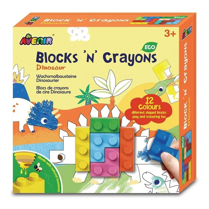 Avenir - Blocks 'N' Crayons Dinosaurios 12pk + 2 Hojas Dibujo Temática (Eco-Friendly)