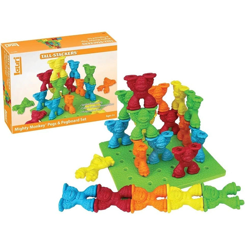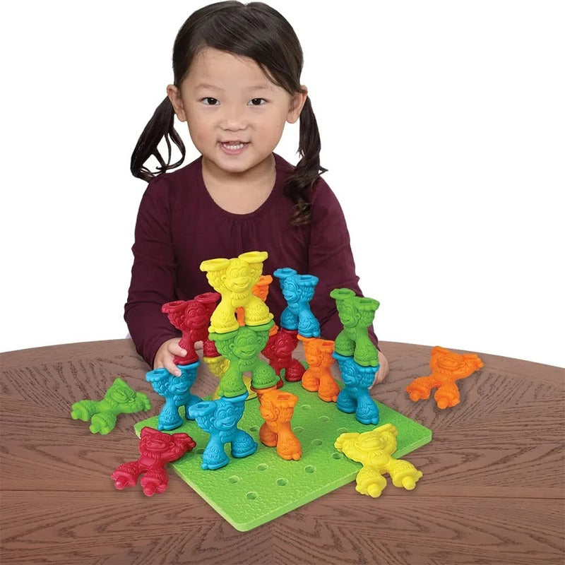 Contenido: 25 piquetas de mono poderoso apilables, tablero de goma de crepé Lauri, guía de actividad.