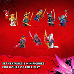 INCLUYE: Samurai X Nya, Golden Jay, Master Wu, Oni Clothadon, Lil' Nelson, General Pythor, The Mechanic y Vengestone Warrior para escenificar la acción NINJAGO