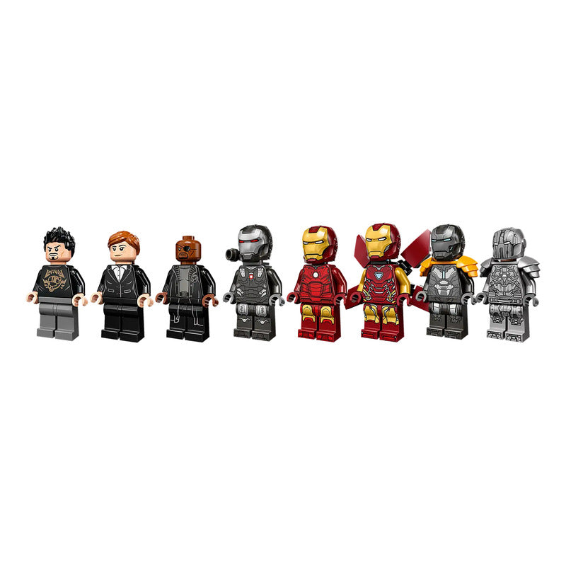 INCLUYE: 8 minifiguras MK3, MK25 y MK85 Iron Man, Tony Stark, Pepper Potts, Nick Fury, War Machine y Whiplash