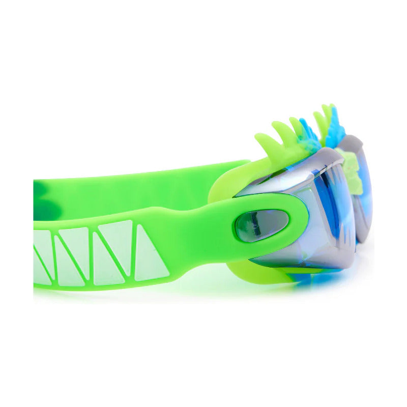 Sumérgete en el verano surcando las olas con estas gafas de natación estilo aviador, con feroces púas de silicona y una lente llena de colmillos serpentinos.